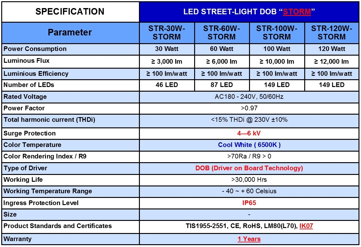คุณสมบัติพิเศษของโคมไฟ LED Street light - DOB Storm