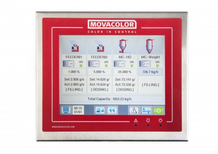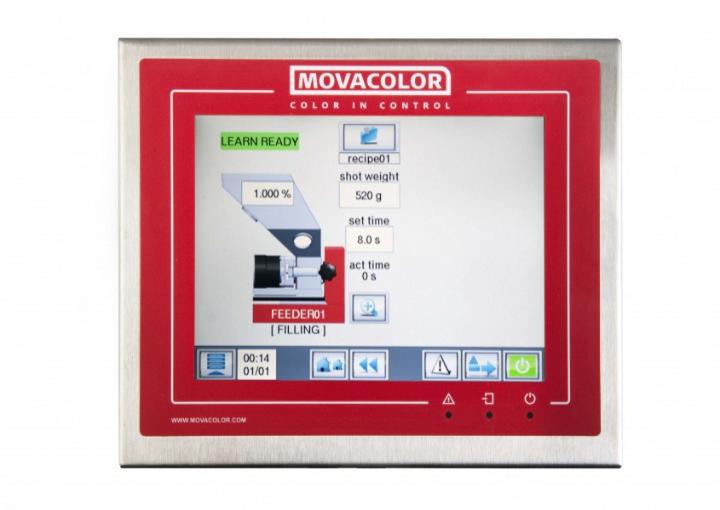The Movacolor touch screen controller offers maximum control for injection molding and extrusion. The optimum user-friendly controller features an 8” full color display and a fast response touch screen. Multiple units can be controlled and there is an internal recipe/data storage function and exchange via USB. Communication via TCP-IP, Modbus or Profibus. Menus are self-explanatory. The controller housing is made of robust stainless steel housing.